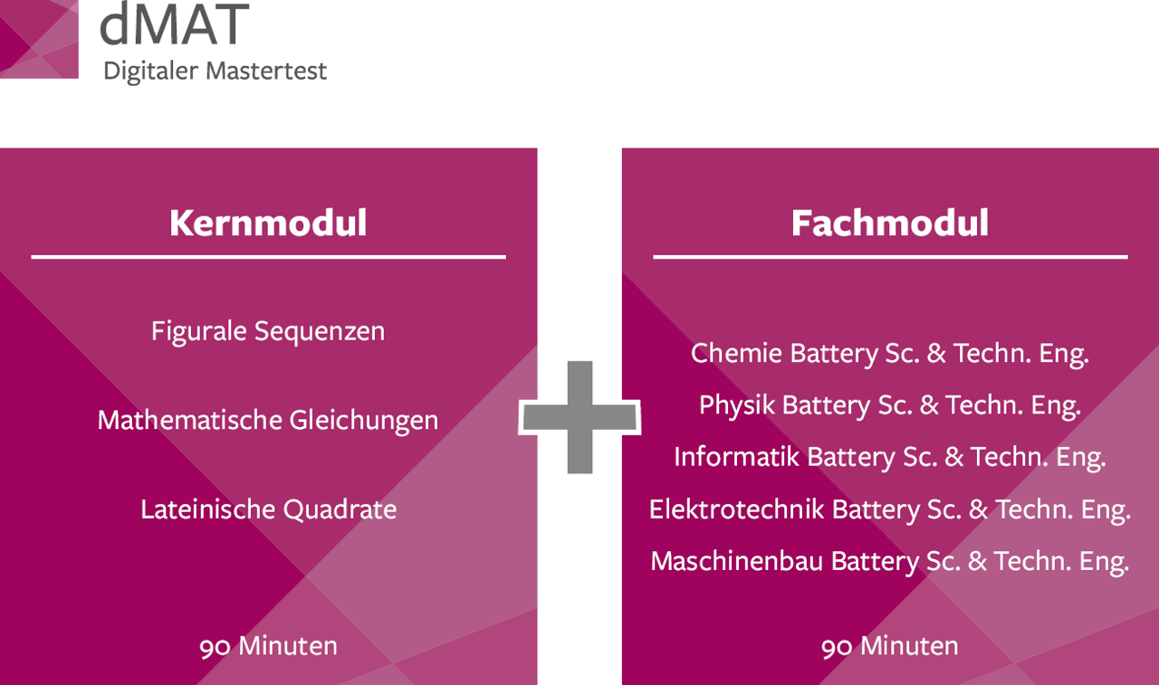 Der dMAT besteht aus zwei Modulen: einem Kernmodul und einem fachspezifischen Modul.